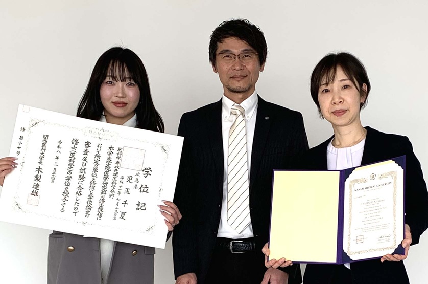 本学位は、当講座の前身である衛生学(幹細胞生物学)講座の頃より、薗田前教授ならびに松岡先生の御尽力によって授与される運びとなりました。(記:角出)