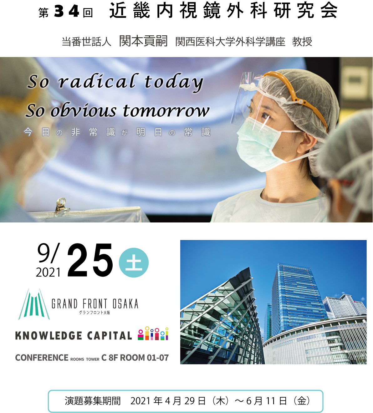 2021年2月6日(土) | 第34回近畿内視鏡外科研究会のホームページを公開しました。 |