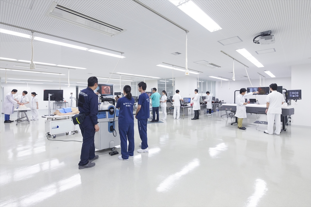 患者さんにより良い手術を提供するためには、常に手術手技を反復して日々積み重ねていく必要があります。そのためにはシミュレーション実習は有効かつ重要な修練方法です。関西医科大学シミュレーションセンター(枚方学舎3階)は、広さ約345㎡、100種類以上の機器を保有しております。最新の内視鏡手術にも対応し、ドライボックスは12台、バーチャルシミュレーターのLapMentorも2台備えています。技術向上により、外科医としてのキャリアアップにもつながり、また、出産、育児などで休職した場合でも、シミュレーション教育により外科医として復帰しやすい環境の提供を目指しています。