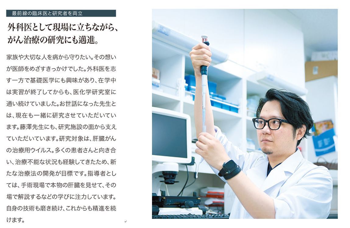 外科の全領域に国内で名の通った一流の外科医がいます。外科の基礎修練はもちろんですが、最先端の知識と技術を学ぶことが可能です。責任をもって指導します。